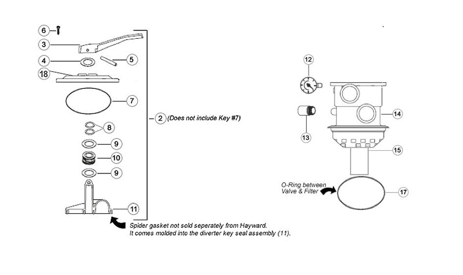 Complete list of genuine replacement parts for the Hayward Multiport Valve, model SP0714T.