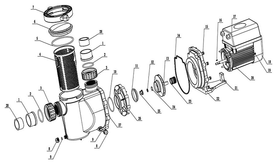 Replacement parts for Madimack inverFLO Plus variable speed inground pool pump.