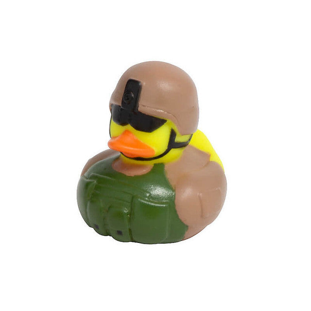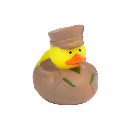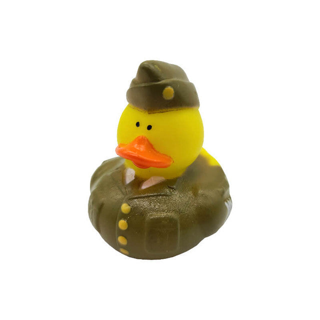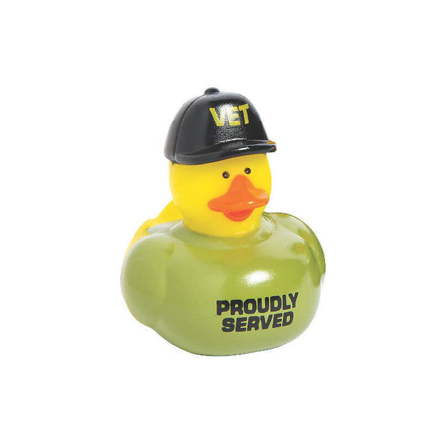 Forward march (or waddle!) These mini rubber duckies honour veterans and members of the armed forces. A great gift for military family members! Select desired style above. 2" Vinyl duckies do not float upright.