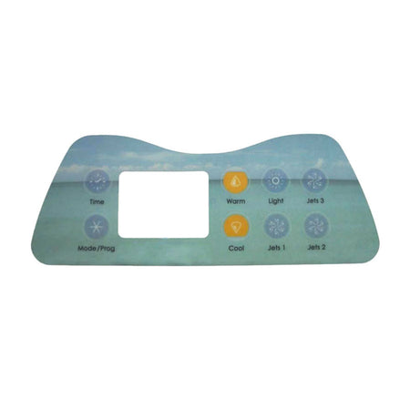 Artesian Spas topside control panel overlay with 8 buttons for the Island series spas that have the custom 800D topside control panel.
