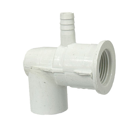 The hot tub cluster jet body has a slip fitting for 1/2" ID water line and a 3/8" barb for airline. It is typically used for the ozone discharge jet in select Dream Maker spas.