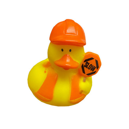 These Construction Rubber Duckies work hard at having fun. A cute addition to your construction birthday party supplies, these rubber ducks are ready to build in helmets and vests. Choose from a duck holding a hammer, shovel or slow sign. They make quackingly cool party favours at a birthday party, classroom celebration and more. Vinyl 2" Duckies do not float upright.
