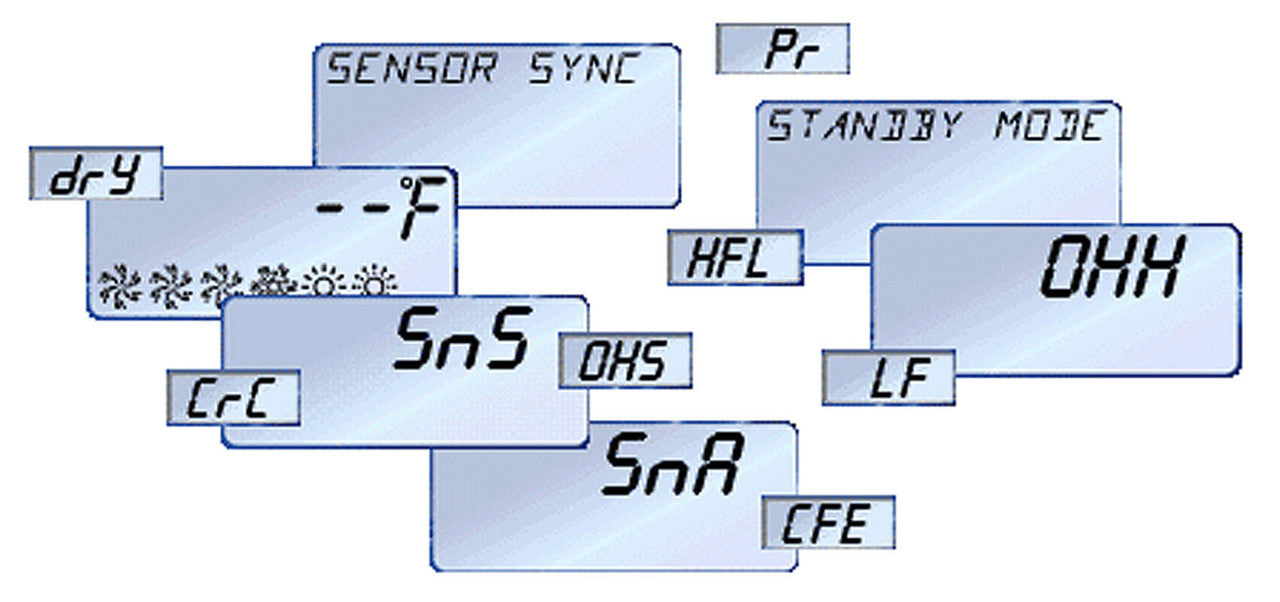 - dry: Inadequate flow in heater. (Displays on third occurrence of "dr" message)