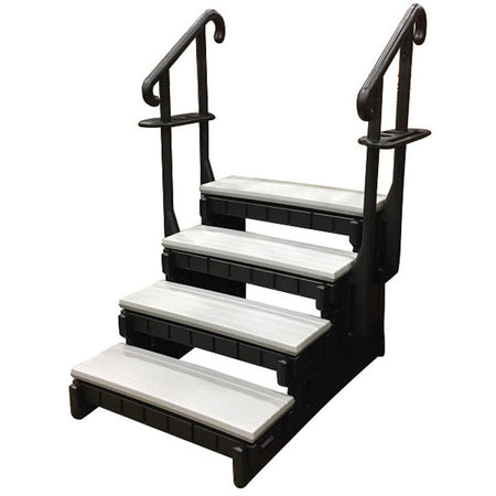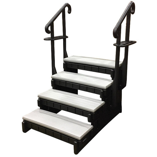 Spa steps are the most convenient way to enter and exit your hot tub and swim spa. These steps are the tallest step we offer at a height of 32" to the top step and have hand rails for added security and safety. They are made by Confer using maintenance free plastic and are easy to assemble.