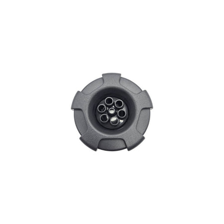 Marquis Spas snap-in style crown jet with grey face has 7 small water port to create a soft massage effect with a 3-1/4" face. This jet was commonly used in Marquis Spas E-Series, Everyday and Celebrity models from about 2008 to around 2012.