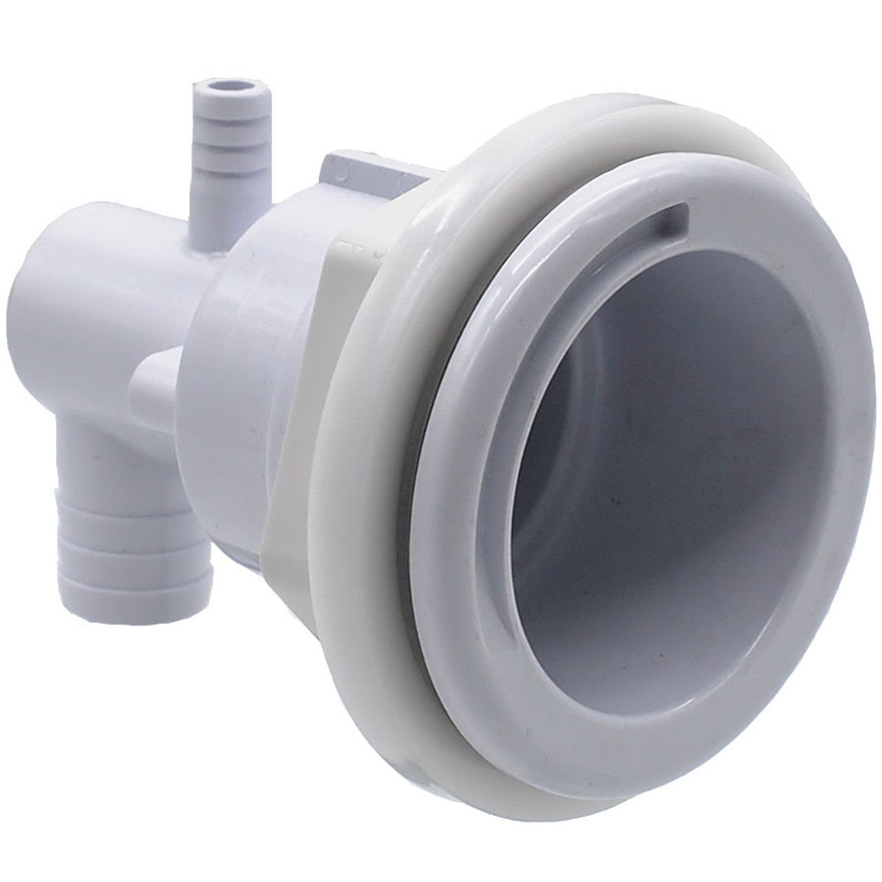Marquis Spas HK16 jet body with 3/4" barb connection for water and 3/8" barb connection for air. This jet body works with the range of Marquis Spas HK16 jet inserts which are sold seperately.