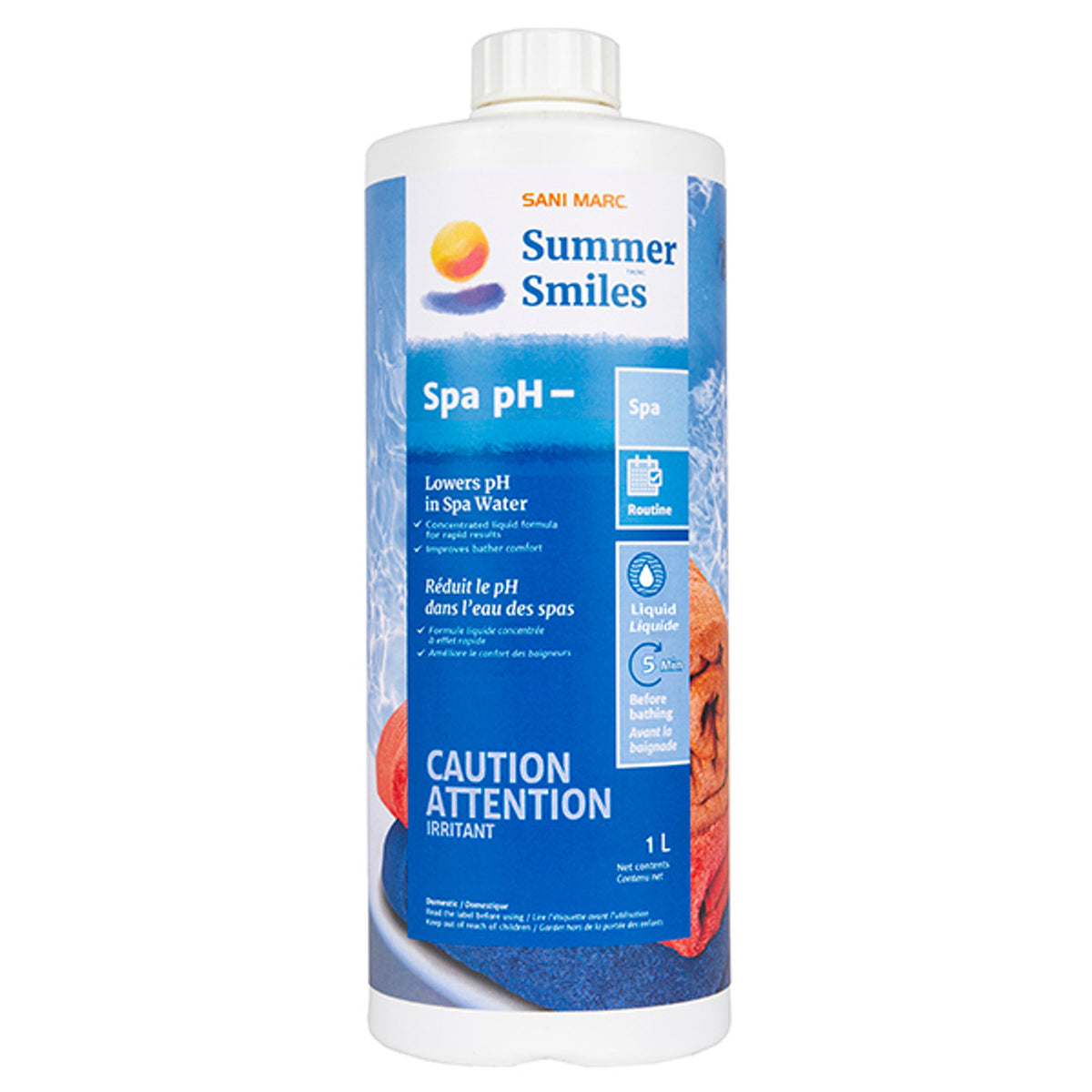 Sani Marc Spa pH - a fast acting liquid gel designed to lower the pH in hot tub water. Water pH should be maintained between 7.2-7.8 for bather comfort and maximum spa equipment life.