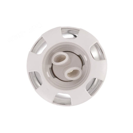 Waterway hot tub jet with crown style chrome and white face, thread in style back.